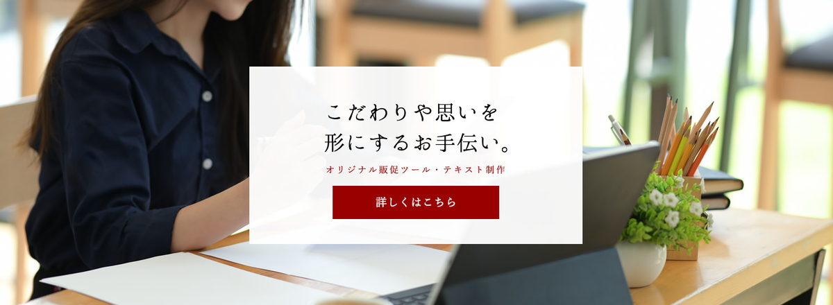 パンフレット・ちらし・ロゴ・名刺・ショップカード・企画書などオリジナルツール制作。伝わる販促ツールを制作いたします。