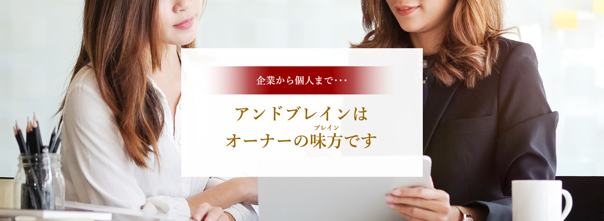 アンドブレインは、スモールビジネスオーナーの夢や目標に向けて 頼れるもう一つの脳として、今ある課題の解決に向けて具体的な改善策やアドバイスをご提案させていただきます。